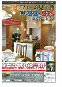 10月22日・23日(土・日)は広島市内2カ所でイベントを開催します。 中国新聞主催「住まいる博」 場所 グリーンアリーナ 10時~16時 ドゥクラフト土肥家具のブースも出展します。 まるごとリフォー...