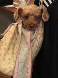 昨日の日曜日もお客様が次々と・・・ 可愛いティアラちゃんもやって来ました。 ティアラちゃんはいつもママのバックの中でいい子ちゃんにしています。 ただ今、椅子の商談中。 もう少し待っててね