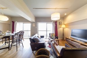 広島市西区の三滝エリアの気持ち良い川沿いマンションの一室。築年数が古く、寒かった居室内も外壁に面する側にウレタンフォームを吹付することにより断熱性能を高めました。フランス映画「アメリ」をモチーフにしな...