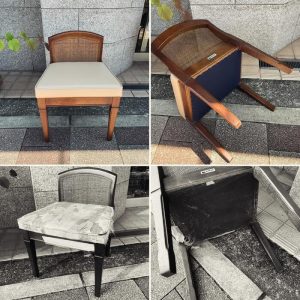 こんにちは。 電話横に置かれているチェアの張替をしました。 猫ちゃんの被害でチェアの裏の不織布もボロボロでした。 マルニ家具の地中海シリーズの元々はドレッサーの椅子だったと思います。 地中海シリーズは...