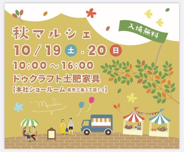 10/19・20(土・日)は秋マルシェ 2024/09/30 10月19日(土)20日(日)10:00〜 ドゥクラフト土肥家具、三条本社ショールームにて マルシェを開催いたします。 出店店舗など日々更新して行く予定です! リフォーム、リノベーションの無料相談も受...
