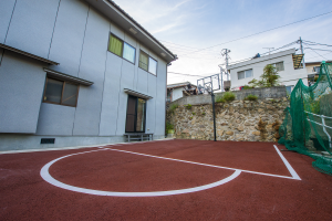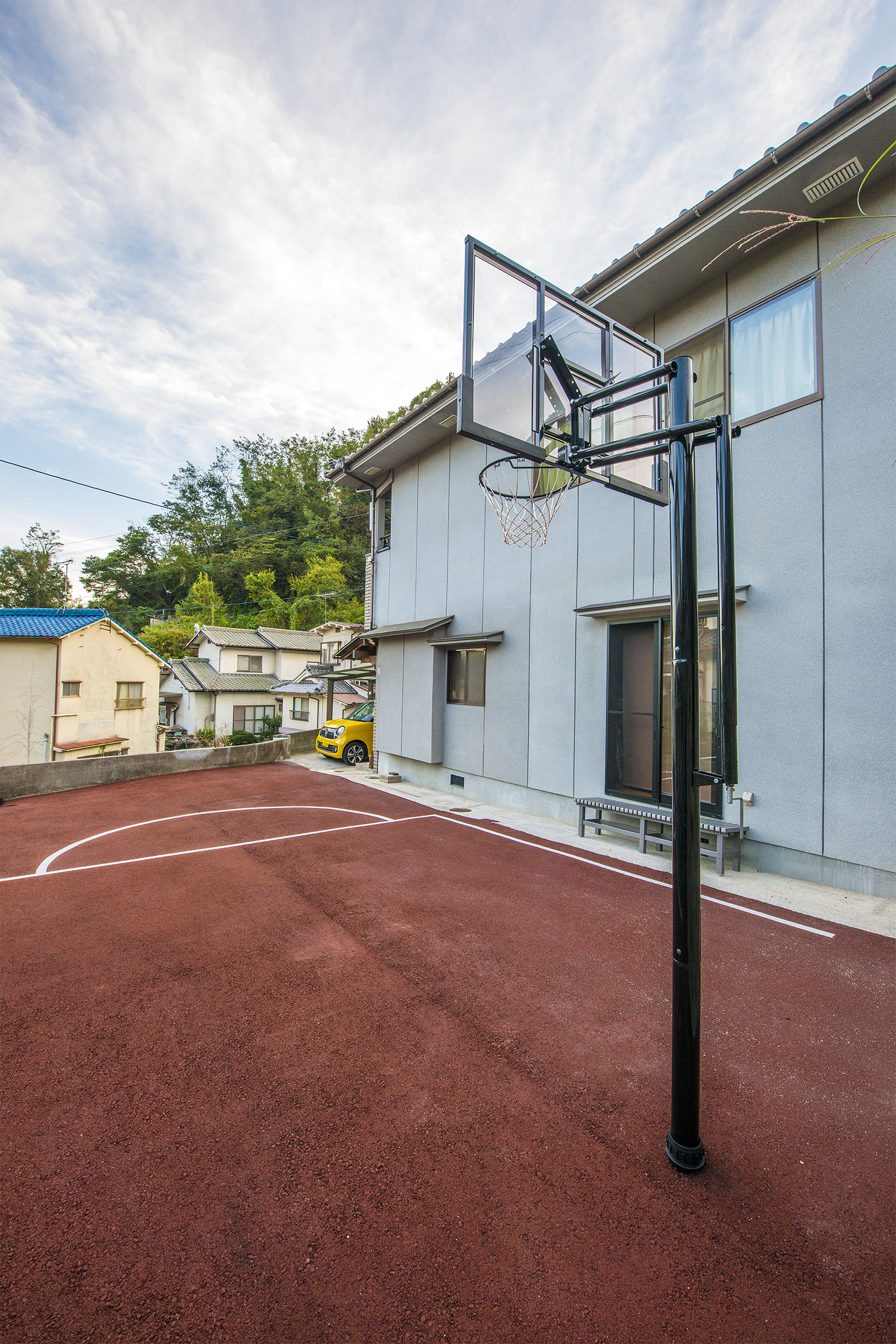 スポーツ大好きご主人の要望は、広い庭の家でバスケットボールのハーフコートを造ること。