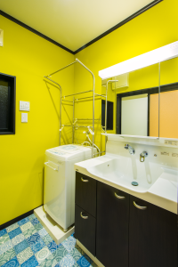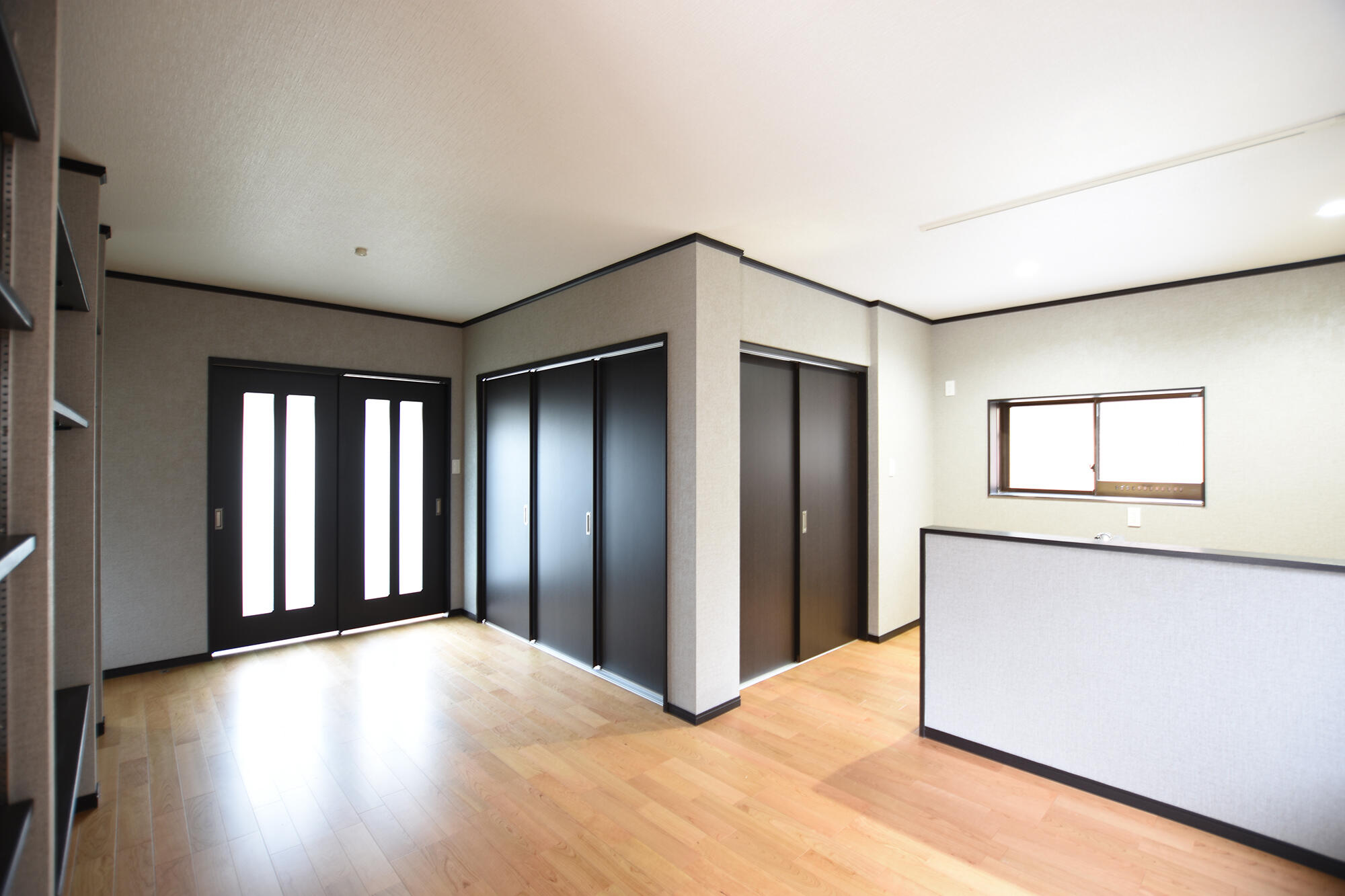 キッチンに居ながらリビングや和室にも目が届く間取にした他、バスケットコートも眺められるようにテラス窓を新設しました。ベビーカーや自転車も置ける広い土間、運動してすぐ洗面・お風呂に行ける動線など、思いっきりスポーツと子育てが楽しめる造りになっています。