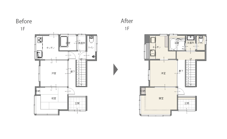 O邸 2025年08月27日 施工事例ギャラリー 物件詳細情報 施工箇所 全面リフォーム 住宅形状 戸建 築年数 72年 施工面積 36.3㎡ 工期 1.5ヵ月 所在地 広島県呉市 主な設備・素材・工事内容 キッチン、洗面台、トイレ交換、クロス張替、フローリング張替、リノベーション 間取り図